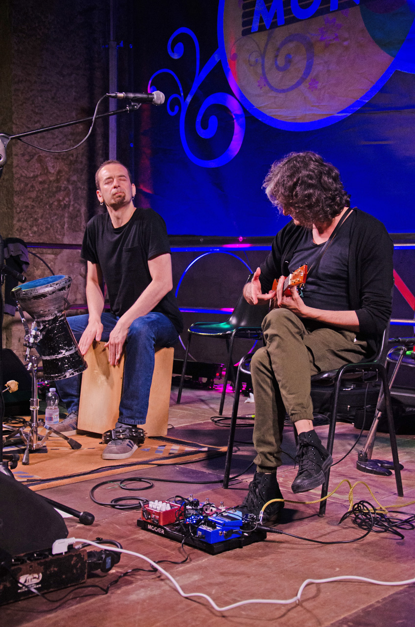 With a classical background and experience in the singer-songwriter and pop scene, Gabriele meets Roberto’s rock and fusion influences, alongside his work in production and arrangement. Together, they have performed across Italy, from Sicily to Turin, created live scores for silent film festivals, and founded Ukulele del Sorriso, a project bringing concerts and music therapy into hospitals. It is through this initiative that the ukulele entered their sound—a journey that continues to expand, embracing new instruments and sonic possibilities.