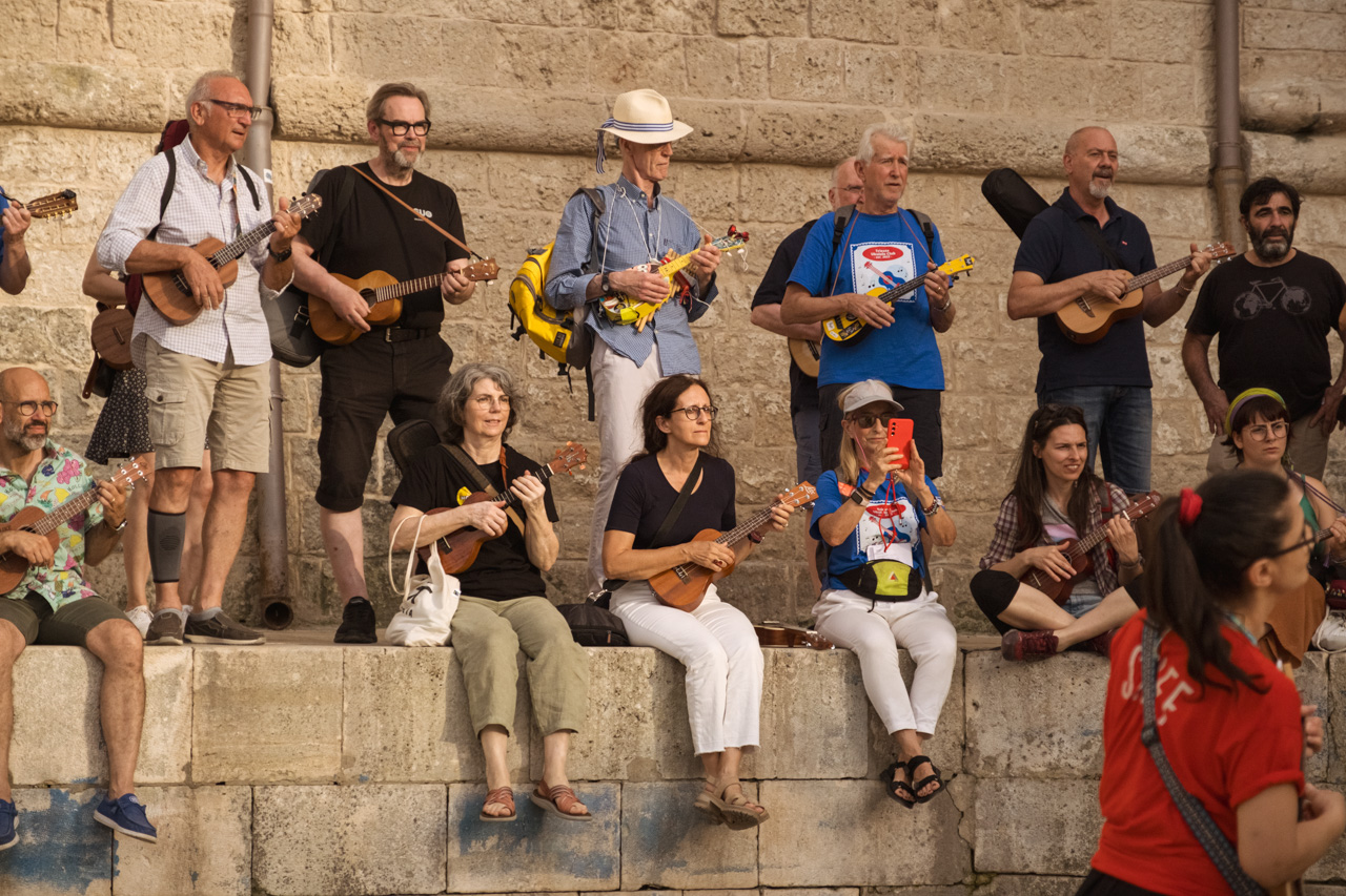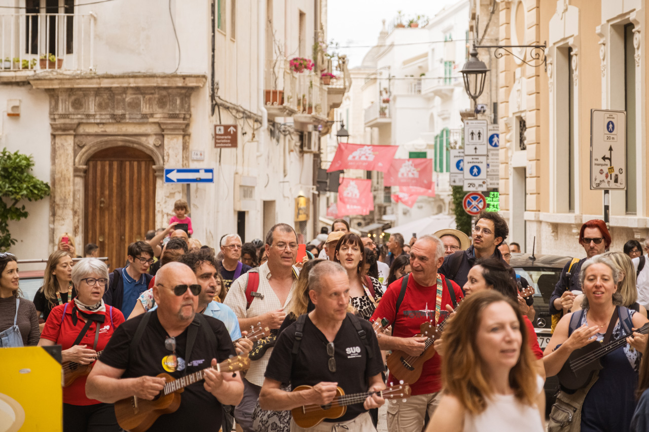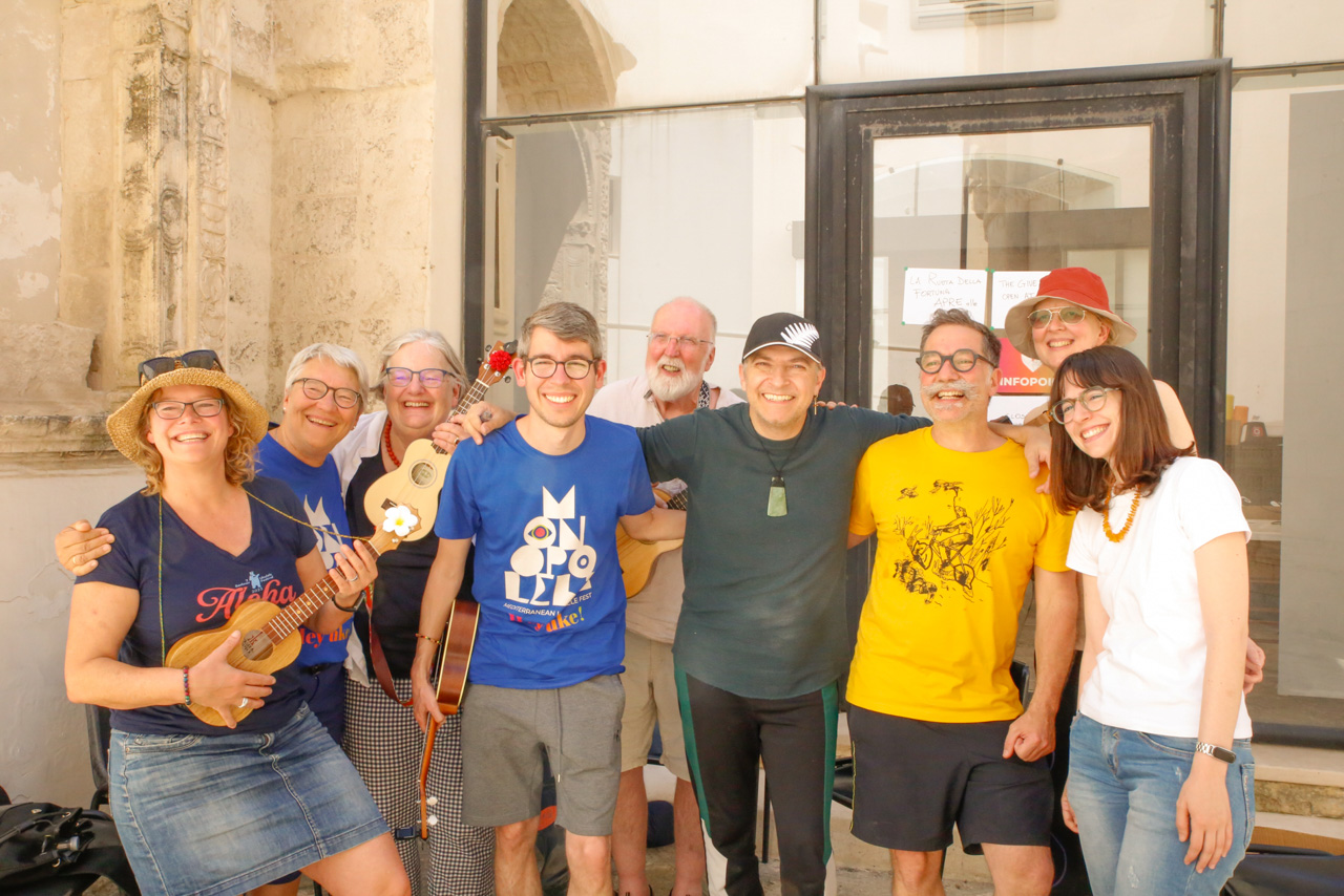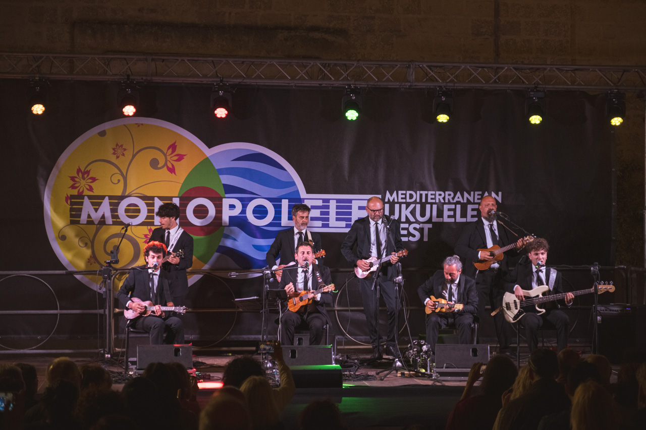 The Monopolele Ukulele Festival was born in Monopoli in 2022 with a mission to promote the ukulele as a tool for connection and cultural exchange, creating an event that celebrates music, Mediterranean tradition, and the value of community. Organized by the Associazione Voltare Pagina, the festival has attracted artists and enthusiasts from around the world since its inception, quickly transforming Monopoli into one of Europe’s ukulele capitals.