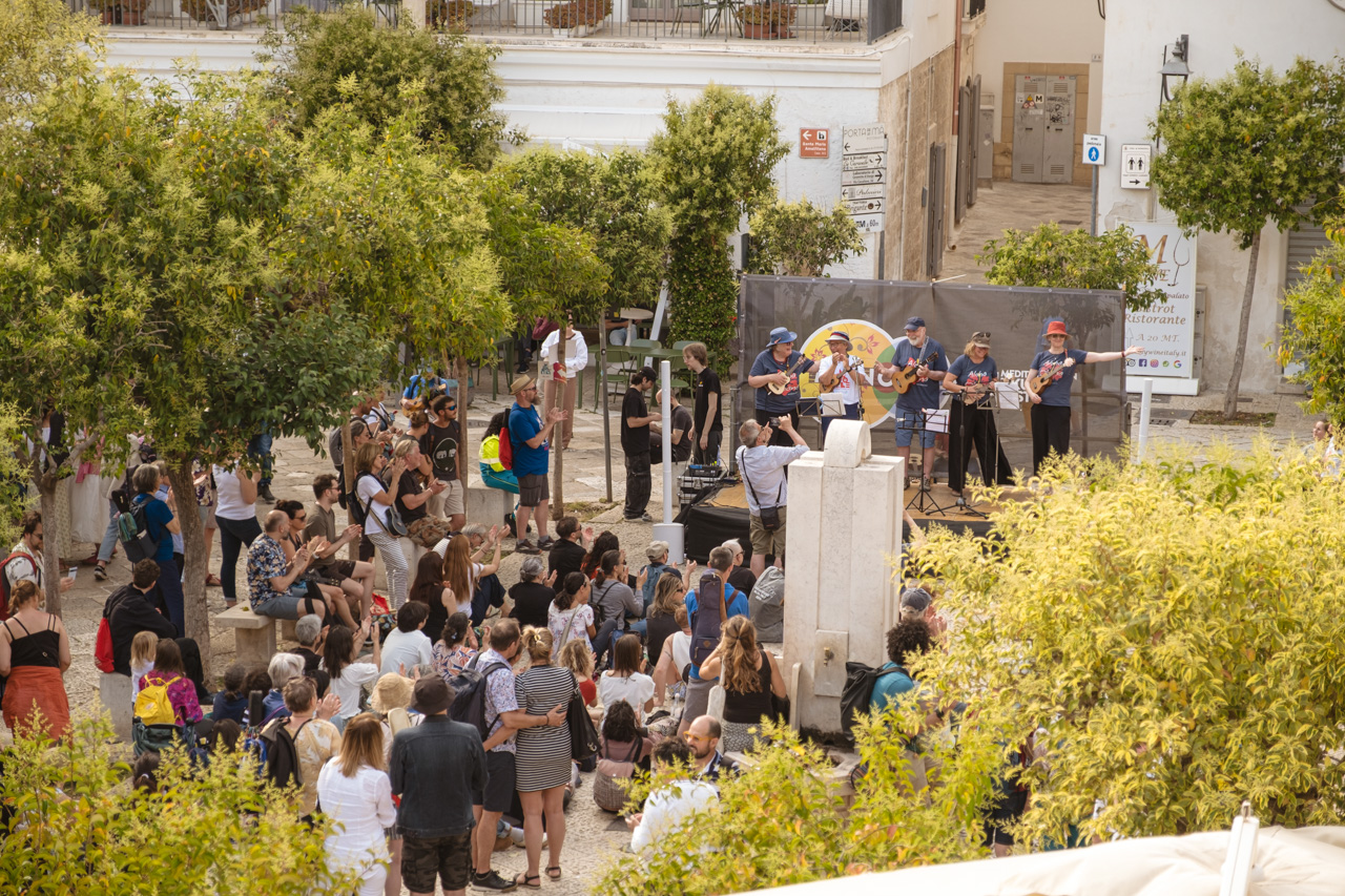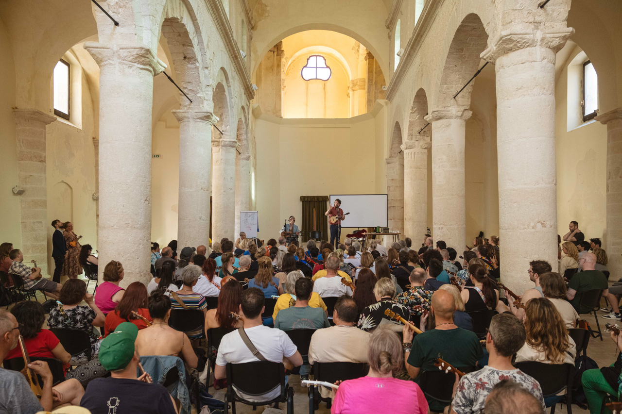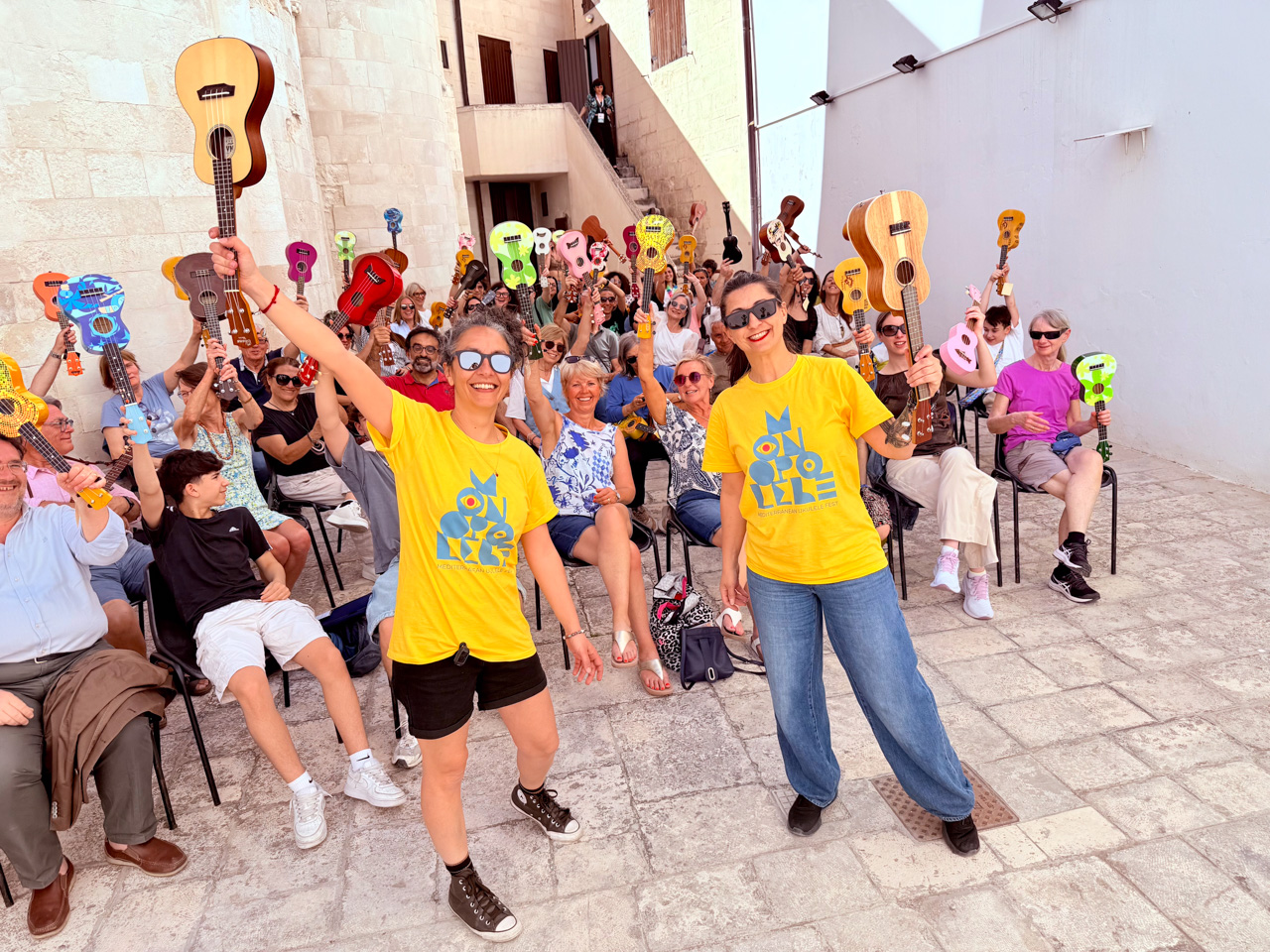 The Monopolele Ukulele Festival was born in Monopoli in 2022 with a mission to promote the ukulele as a tool for connection and cultural exchange, creating an event that celebrates music, Mediterranean tradition, and the value of community. Organized by the Associazione Voltare Pagina, the festival has attracted artists and enthusiasts from around the world since its inception, quickly transforming Monopoli into one of Europe’s ukulele capitals.