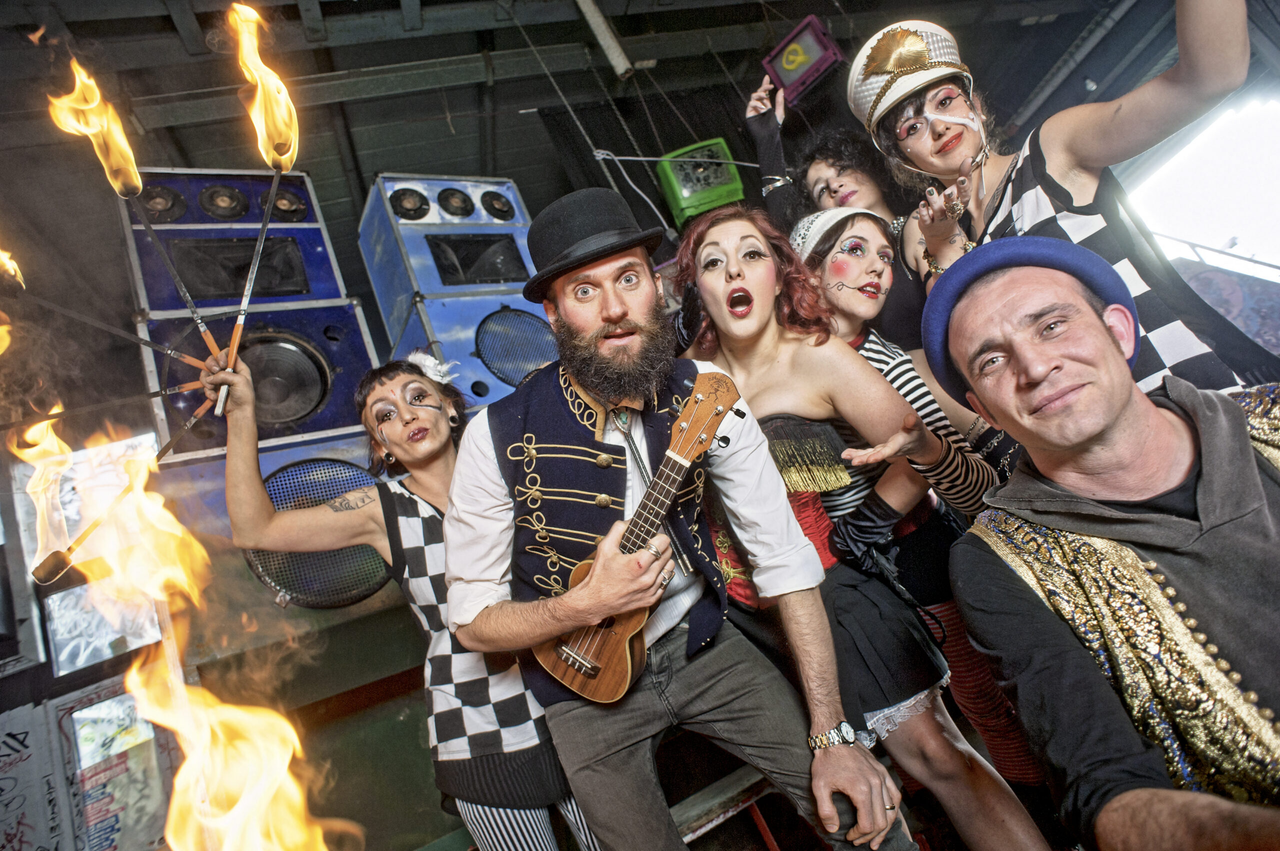 The Reggae Circus is an evocative show, full of music and emotions. It is conceived and directed by Adriano Bono, a well-known name in the national underground scene thanks to his participation, as singer and author, in the successful experience of Radici Nel Cemento. Adriano Bono, by the way, was one of the first popularizers in Italy of the ukulele The show, a happy marriage of Reggae music, circus show and ukulele, feeds on the great technical ability of the musicians on stage on which a highly evocative narrative will be tacked thanks to the interaction with circus artists and acrobats.