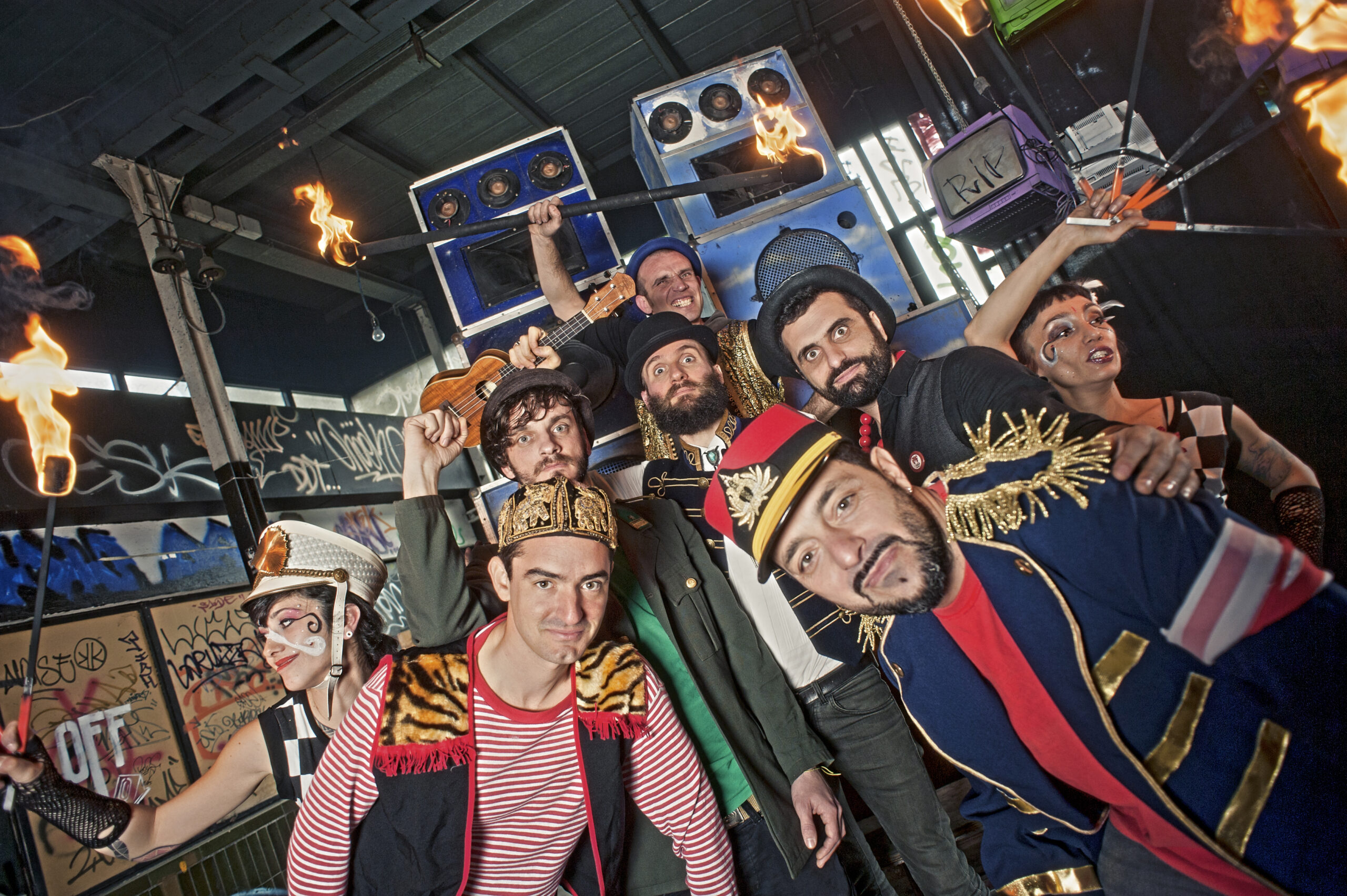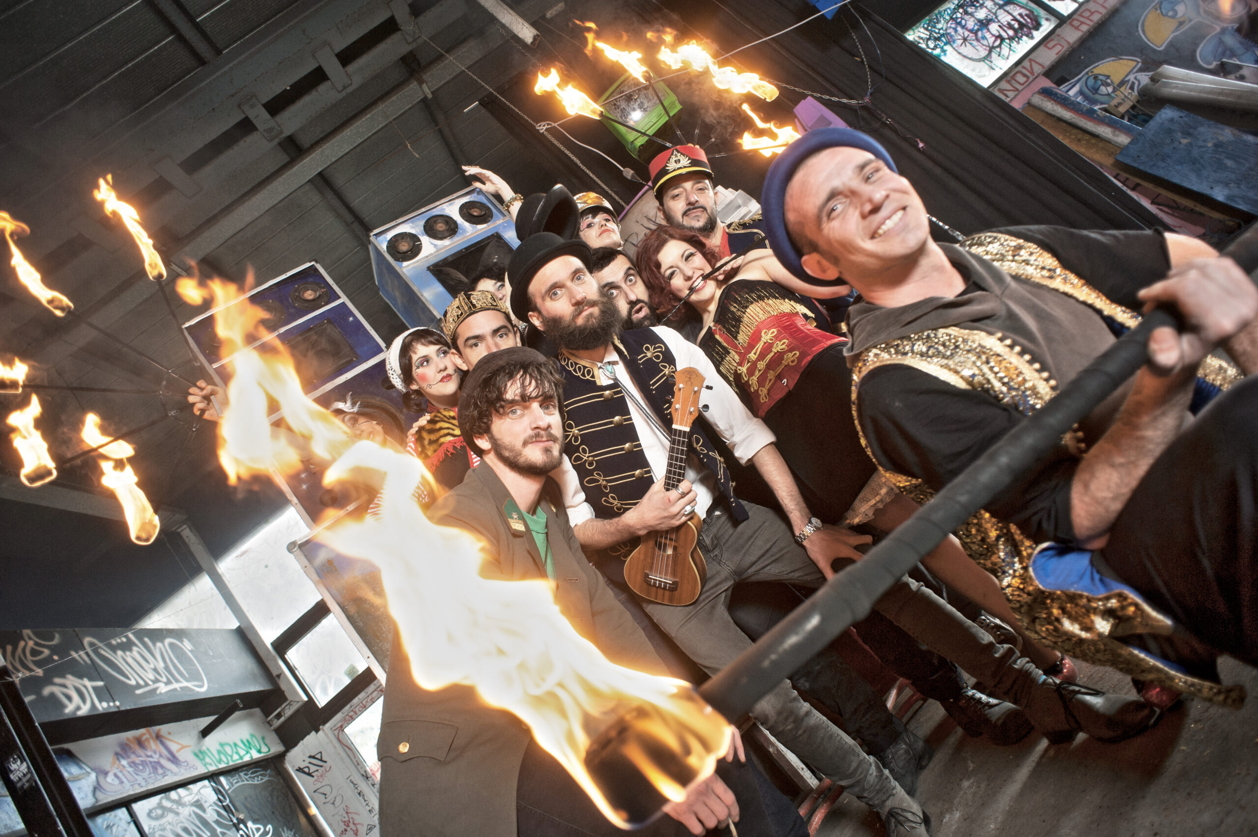 The evening will immediately ignite with the bursting onto the stage of Ukus in Fabula, an Italian ukulele trio, one of the best-known ukulele projects abroad, true masters in the art of the boundless medley. Their performance is characterized by incredible harmonic interlocks, abrupt time fields, ukuleles that ignite and a repertoire capable of traveling musical paths that go, quietly, from Gershwin to Goldrake and, above all, lots and lots of comedy. Not to be missed. And when the night gets hotter and denser, Adriano Bono and the Reggae Circus will take the stage and turn the evening into an extraordinary circus ritual of sound, magic, dance and lots of reggae. The square will explode with enthusiasm!