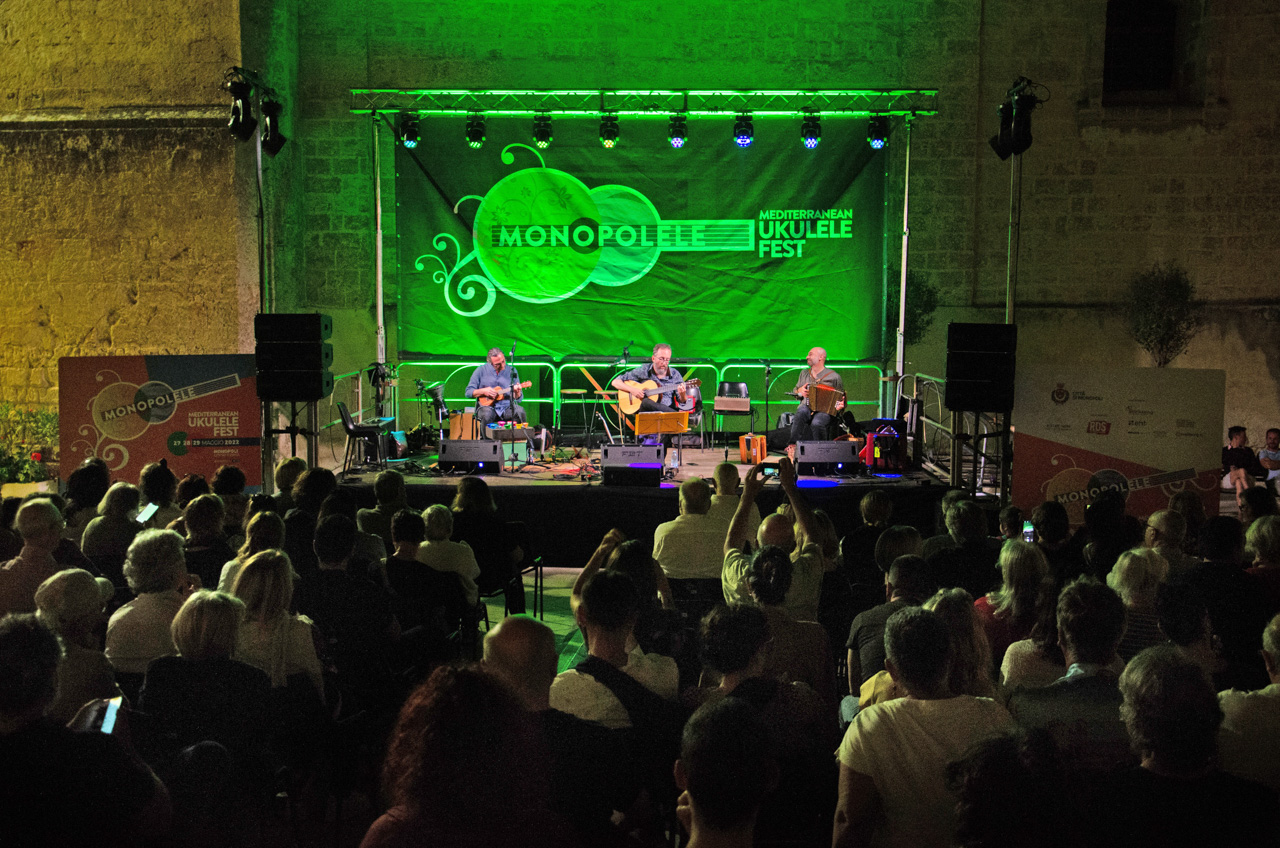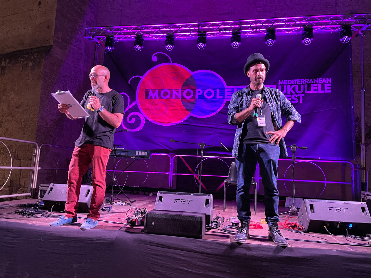An extraordinary project created by the Monopolele Festival. A ukulele and a “chitarra battente” conversing. The sound of the south, the Mediterranean, the parched earth, the energy and heat of the sun. Italy’s greatest Ukulele virtuoso, Lucania’s Danilo Vignola, and Italy’s greatest “chitarra battente” virtuoso, Calabria’s Francesco Loccisano together In the land of Puglia. The strings will vibrate, the percussion will pulsate, and a pouring of irrepressible energy will be released throughout Palmieri Square and beyond. We at the Monopolele Festival are looking forward to it!