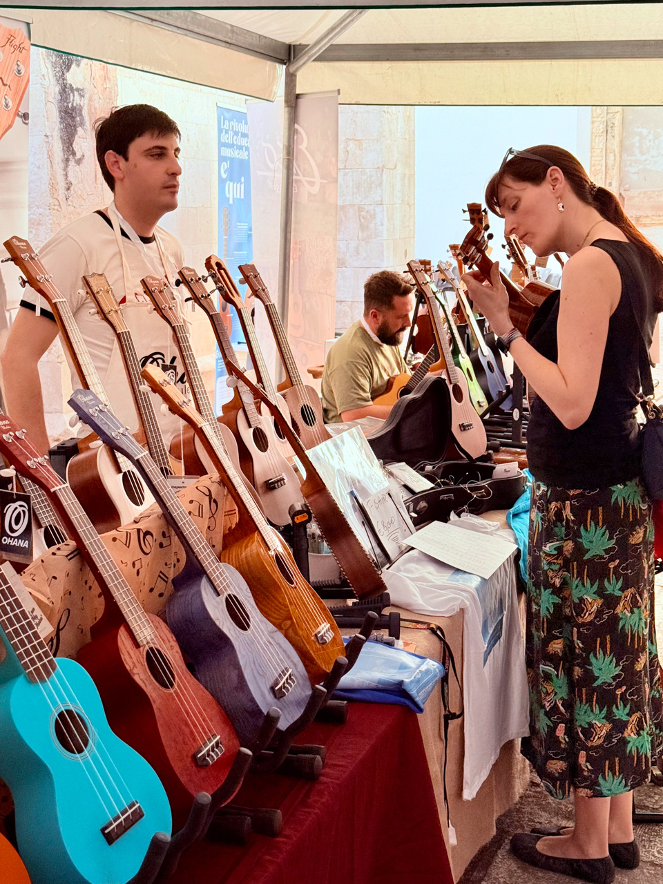 Lorenzo Vignando aka Ukulollo is one of the great champions of the ukulele in Italy. Known and appreciated all over the world, Ukulollo is a true specialist of 80s and 90s covers. With a simple four-stringed instrument (the ukulele, in fact) he is able to recreate the fantastic atmospheres of those years, the most beautiful and danceable songs. And, just for the Monopolele Festival 2025, Lorenzo has built a special set: a disco night to which you are all invited to sing (and dance) to those unforgettable songs.